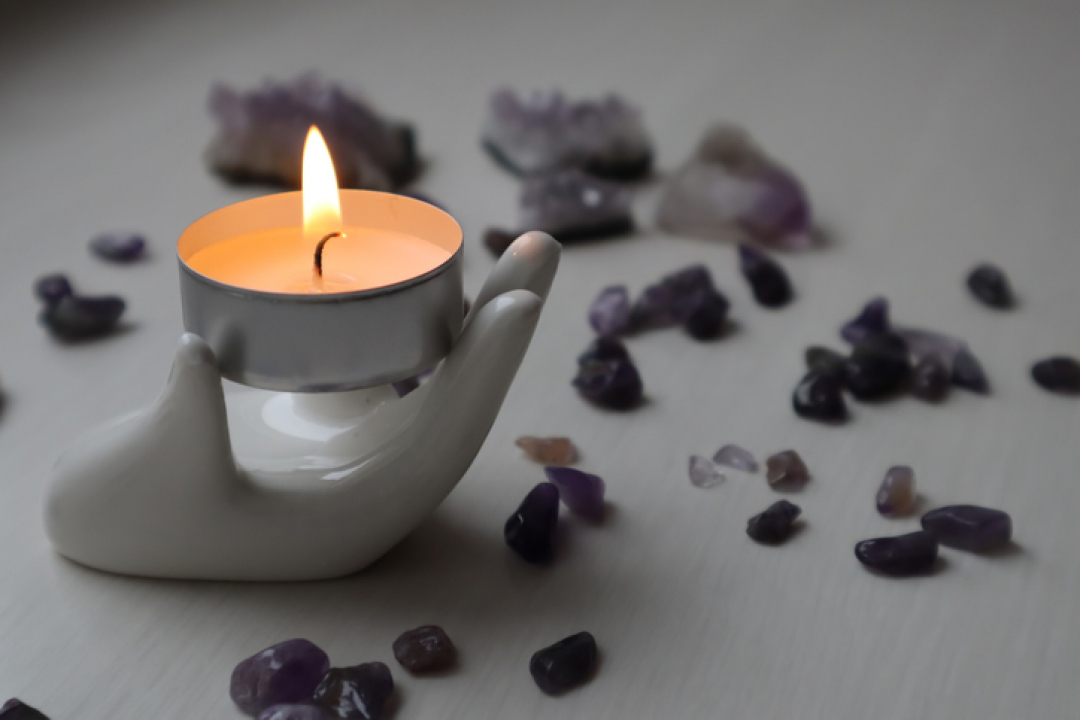 Light the candle. Gaze at the flame and focus on your desire for your psychic abilities to grow. Think of why you want these skills to improve and how you will utilize your increasing talents. Place your fingertips to gently rest on a few of the amethyst pieces and state: